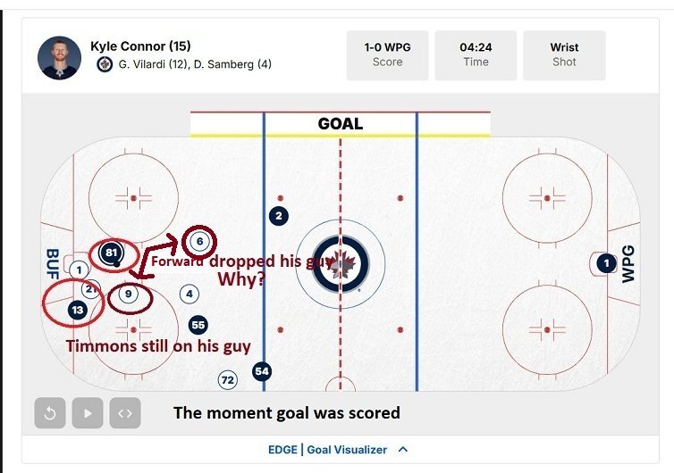 I corrected my original post...I can't tell from the replay if it was Benson or Norris that dropped coverage. Either way, it was one of the forwards. -