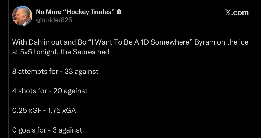 When Dahlin went down last year, they went in their 13 game winless streak if memory serves me. Itβs 1 now, piggybacked on two losses prior. Whatβs the bet360 over/under its reaches 13 again? Meanwhile the crappy Bruins have won 6 straight. Lol -