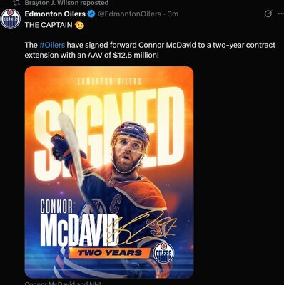 Mcdavid has just singed his extension, no word yet on AAV, years or total money