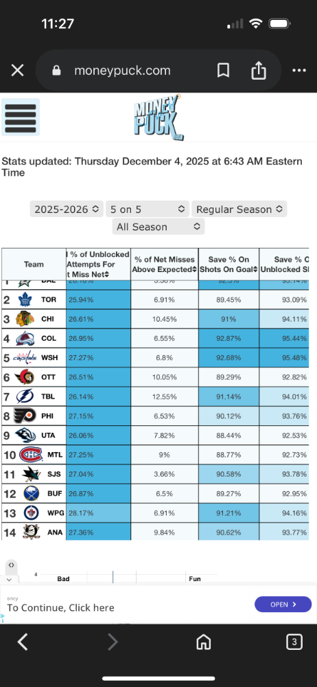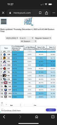 2. None of the shooting % stats indicate that shooting is a Sabres issue. They are above average in almost every shooting metric.