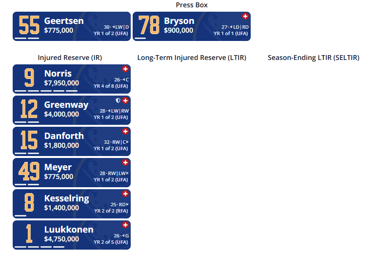 I'm not sure when the clock runs out on the 30-day thing with STL - something like they automatically get him and he goes to their AHL affiliate (I'm not 100 percent certain on this rule so someone can feel free to clear it up). Anyone else who claims him after that window has to keep him on their roster, so if you can wait out that period you might be able to send him to Rochester and waive Georgiev if he clears. He's had jumbly lines since the get-go with benson missing time and Norris being hurt in the first game. I think he might have played center for a game. It's certainly not good enough and he needs to play better though.