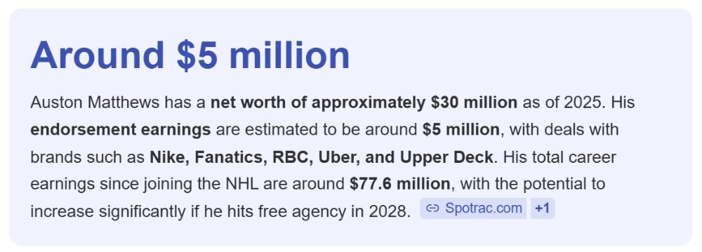McDavid will get all the national stuff though, especially since he’s a Canadian. I wonder how much money the porn stache has cost Matthews.