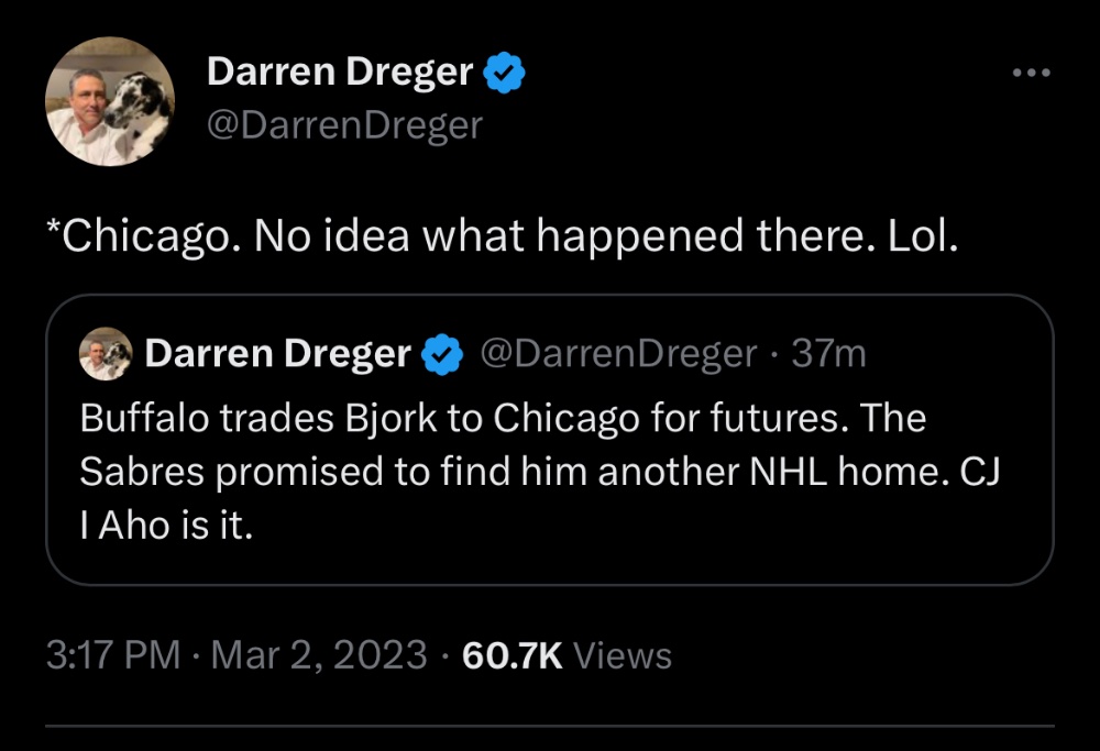 19. 1000% THIS 👆. IMHO this was done because DG felt threatened knowing that Peca would probably be his predecessor if he stayed. Just like like when Murray forced lafontaine out. He could be an upgrade from Okie depending on how well the hip thing.